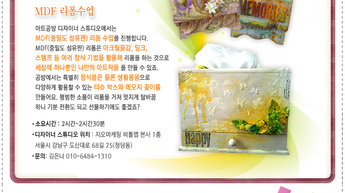 - 아트공방, 디자이너스튜디오; MDF 리폼수업
