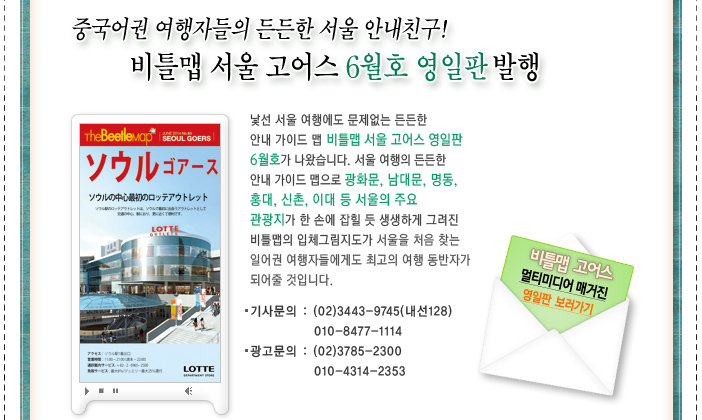 - 중국어권 여행자들의 든든한 서울 안내친구! 비틀맵 서울고어스 2014년 6월호 영중판 발행