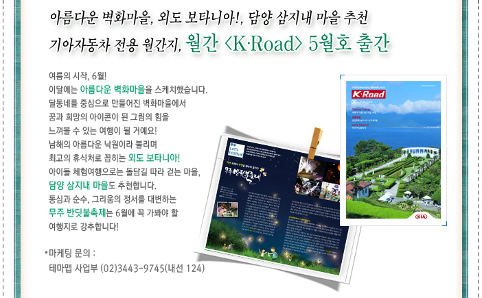 - 아름다운 벽화마을, 외도 보타니아~, 담양 삼지내 마을 추천, 기아자동차 전용 월간지, 월간<KㆍRoad> 6월호 출간