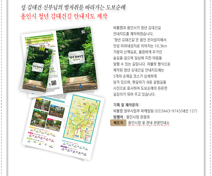 - 성 김대건 신부님의 발자취를 따라가는 도보순례 <용인시 청년 김대건길 안내지도> 제작