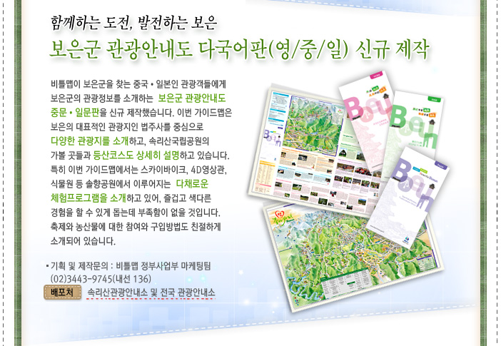 - 함께하는 도전, 발전하는 보은.. 보은군 관광안내도 다국어판(영/중/일) 신규제작