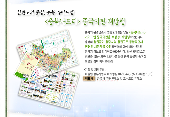 - 한반도의 중심,충북가이드맵..<충북나드리>중국어판 재발행