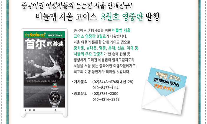 - 중국어권 여행자들의 든든한 서울 안내친구! 비틀맵 서울고어스 2014년 8월호 영중판 발행
